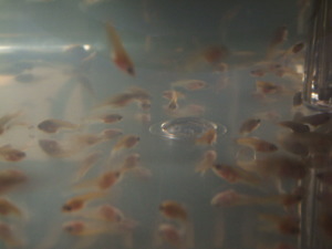 ついでに、ベタ稚魚(小)の様子など。魚口密度が非常に高いです。(^ ^;)ゞ