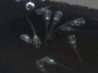 孵化後3日、現在のベタ稚魚(小)です。ホントに、どこにいたんだ、君ら。