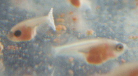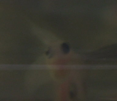 オッドアイな稚魚です。大きさが違ったので分かったのですが2匹はいました。