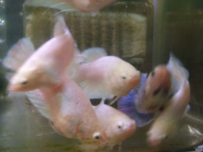 ここに写っていない二匹が、ヒレが青混じり&赤混じりな色をしています。