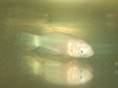 こっちはラン子ちゃんのうちの1匹です。最初に18匹しかいなかったので、無事に育てられるかと思いましたが、今のところ1匹も落ちずにみんな元気です。ただ、ベリースライダーになっているのもいるので、わりと大きくなったことだし、ブラインシュリンプと交互に刻み赤虫を与えはじめました。すでに刻み赤虫を結構食べることができているようなので、近いうちにブラインシュリンプはやめようと思います。半分を刻み赤虫にしただけで、ベリースライダーは改善されてきているようです。